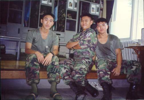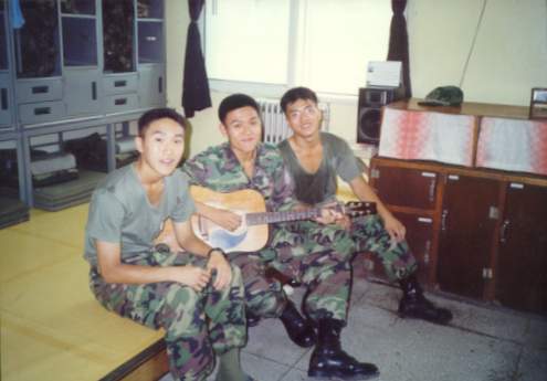 위 사진은 체단장 앞에서 찍은 것이다. 오른쪽에 군번줄을 차고 있는 사람이 정제승이다. 체단장 창문에 모기장이 되어 있는데, 정승제가 작업한 것이다.